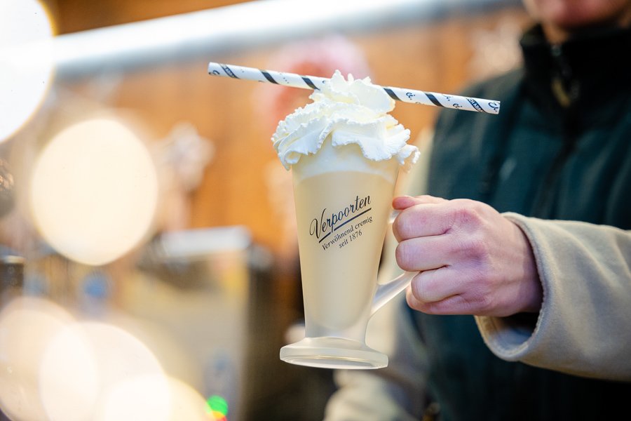 Willkommen in der Glühweinvielfalt! Ob weißer, roter oder mit Amaretto und Beeren versüßter Glühwein – wir bieten das Kultgetränk in vielen verschiedenen Ausführungen. Eines unserer Highlights ist sicher der Eierpunsch mit leckerem Verpoorten Eierlikör und einem Klecks Sahne.