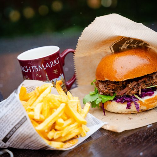Die Illerbuben sind bekannt in Ulm und Umgebung. Seit 2017 sind Holzi und Kevin mit ihrem babyblauen Foodtruck unterwegs. Bei den Jungs gibt es leckere Bratwurstkreationen, Steakhouse Pommes und weitere leckere Speisen und Getränke. Auch für den süßen Zahn haben die Illerbuben was im Angebot: Apfelküchle mit Zimt und Zucker oder eine vegane Trinkschokolade mit veganer Sahne. Ein weiteres Highlight ist sicher das PULLED BEEF Weihnachtsmarkt Spezial: Ein gezupftes Fleisch vom Allgäuer Weiderind, welches über Stunden schonend gegart wurde, dazu reichen die Buben einen Apfel-Rotkraut-Salat, eine hausgemachte BBQ Soße, französischen Brie Käse und fürs Topping gibt es noch Waldpreiselsbeeren obenauf.
