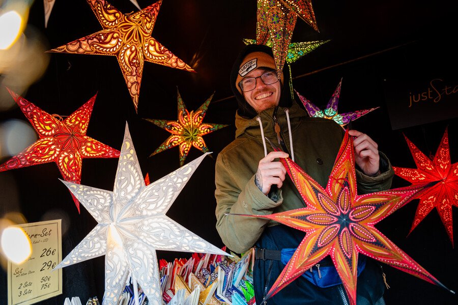 Willkommen bei justStars – Seit 1997 erhellen wir die Welt mit unseren einzigartigen Sternen. Die Inspiration für unser Unternehmen kam während einer Rucksackreise durch Indien, die unseren Gründer Sebastian Mücke dazu bewegte, eine nachhaltige, ökologische und faire Firma ins Leben zu rufen: justStars. Seit mehr als 20 Jahren bringen unsere handgemachten Papiersterne ein warmes Leuchten in ganz Europa.