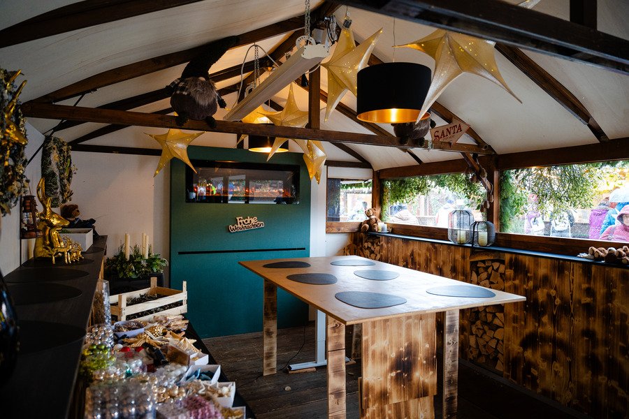 Taucht ein in unsere einladende Atmosphäre, denn in unserer Hütte gibt es mehr als nur Getränke. Wir haben die Hütte aufgeteilt, um euch verschiedene Workshops anzubieten. Bei Markus und Doris könnt ihr nicht nur eure Lieblingsgetränke genießen, sondern auch an kreativen Workshops teilnehmen. Bindet eure eigenen festlichen Kränze oder stellt süße Teddybären zusammen. Hier könnt ihr nicht nur trinken, sondern auch eure eigene Weihnachtsdekoration schaffen.
