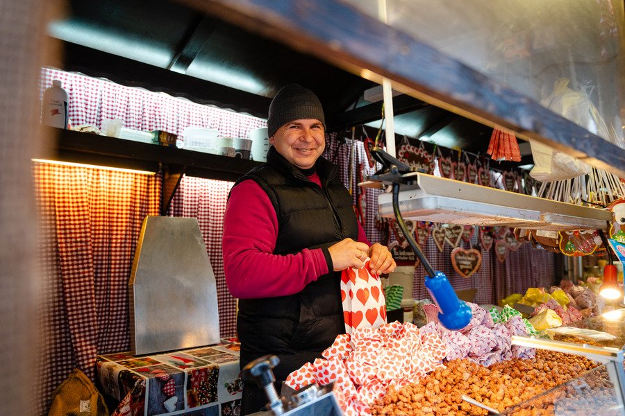Wir zaubern lachende Gesichter und versüßen Ihnen den Weihnachtsmarkt-Bummel mit dem süßen Geschmack von Mandeln, Zuckerwatte & Co.