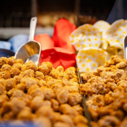 Unser Highlight sind sicher die Schaumküsse mit verschiedenen Füllungen. Wie wäre es mal mit einer Waffeltüte wie man sie noch von früher kennt? Natürlich dürfen Zuckerwatte, Lebkuchenherzen, Magenbrot und gebrannte Nüsse an einem guten Süßwarenstand nicht fehlen.