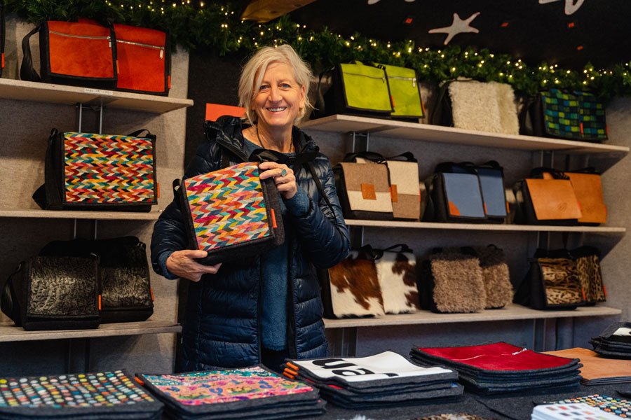 Am Stand der beliebten Si-Taschen aus Ulm entdecken Sie hochwertige Taschen aus Wollfilz, die für ihre Langlebigkeit, Nachhaltigkeit und ihren besonderen Look bekannt sind. Das Markenzeichen: die wechselbaren Taschenklappen, die jede Tasche im Handumdrehen zu einem individuellen Lieblingsstück machen.