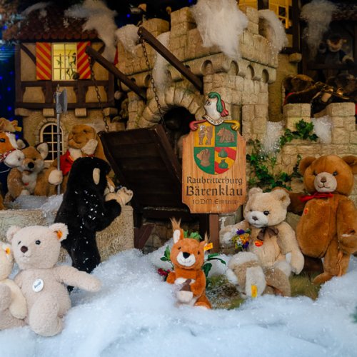 Im Winter machen alle Bären Winterschlaf... außer natürlich die kuscheligen Teddybären von Steiff! Die sind täglich fleißig im Bärenland in unserer Steiff- Schauhütte. Gemeinsam mit vielen weiteren Freunden wie Luchs, Wildschwein, Pferd und Co. ist hier richtig viel los. Auch in diesem Jahr freuen sich unsere Besucher schon darauf zu entdecken, welche tolle Landschaft die Original Steiff-Tiere dieses Jahr zum Leben erwecken.